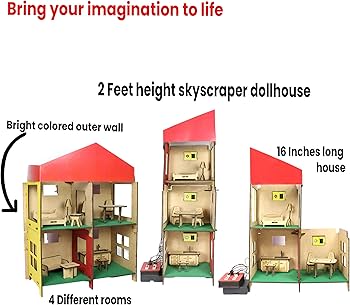 Amazon Com Butterfly Edufields Modular Stem House For Kids With 10 Miniature Furniture 16 Accessories 4 Colourful Led Lights 2 Ft Height 4 Rooms 3 Storey Wooden Electric Diy Doll