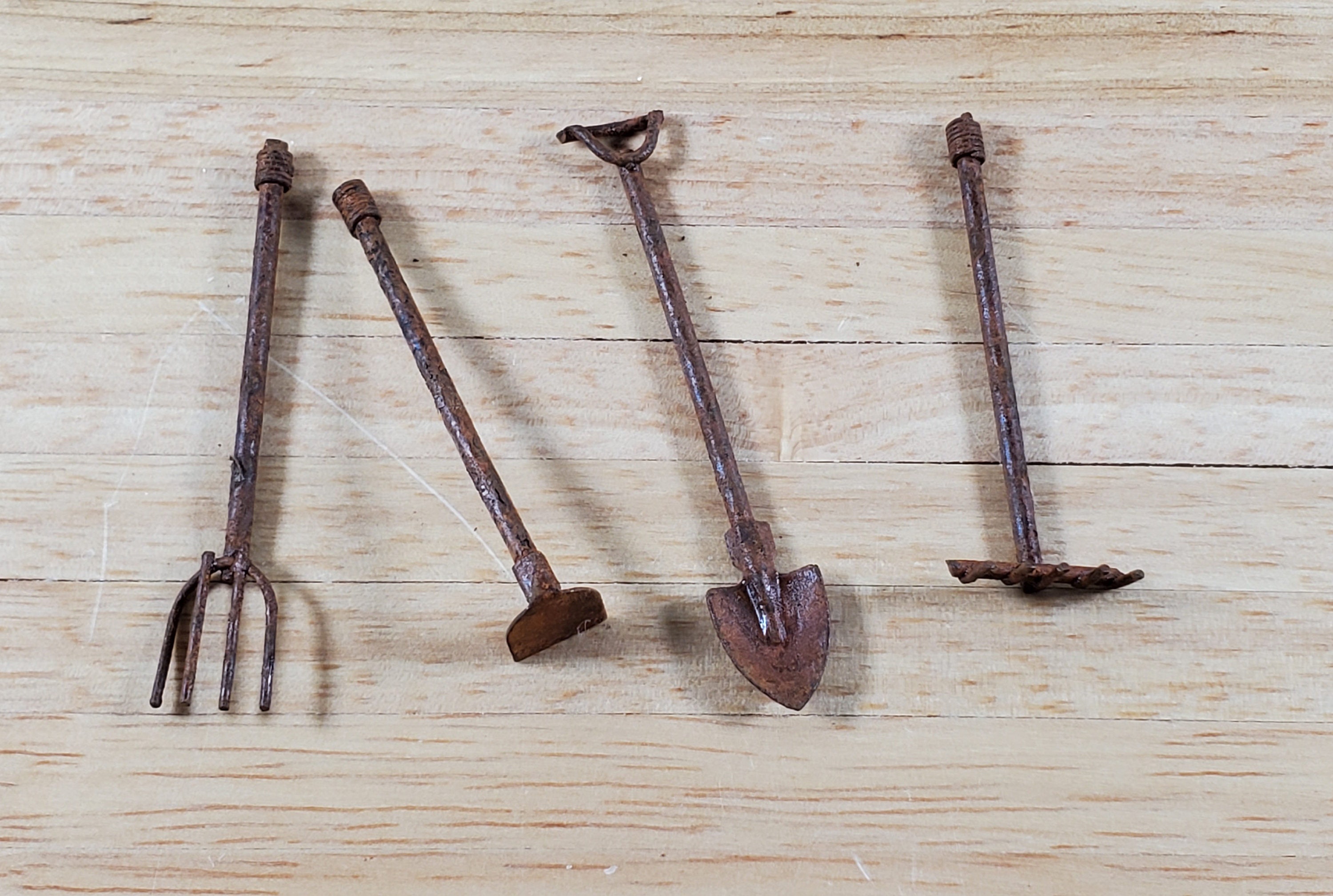 Dollhouse Half Scale Garden Tools 1 24 Scale Miniatures Fairy Garden Metal Rusted Etsy